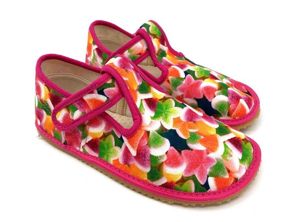 Vzor detských papučí: Colorful Candy, papučky zdobia krásny kvetinový motív.