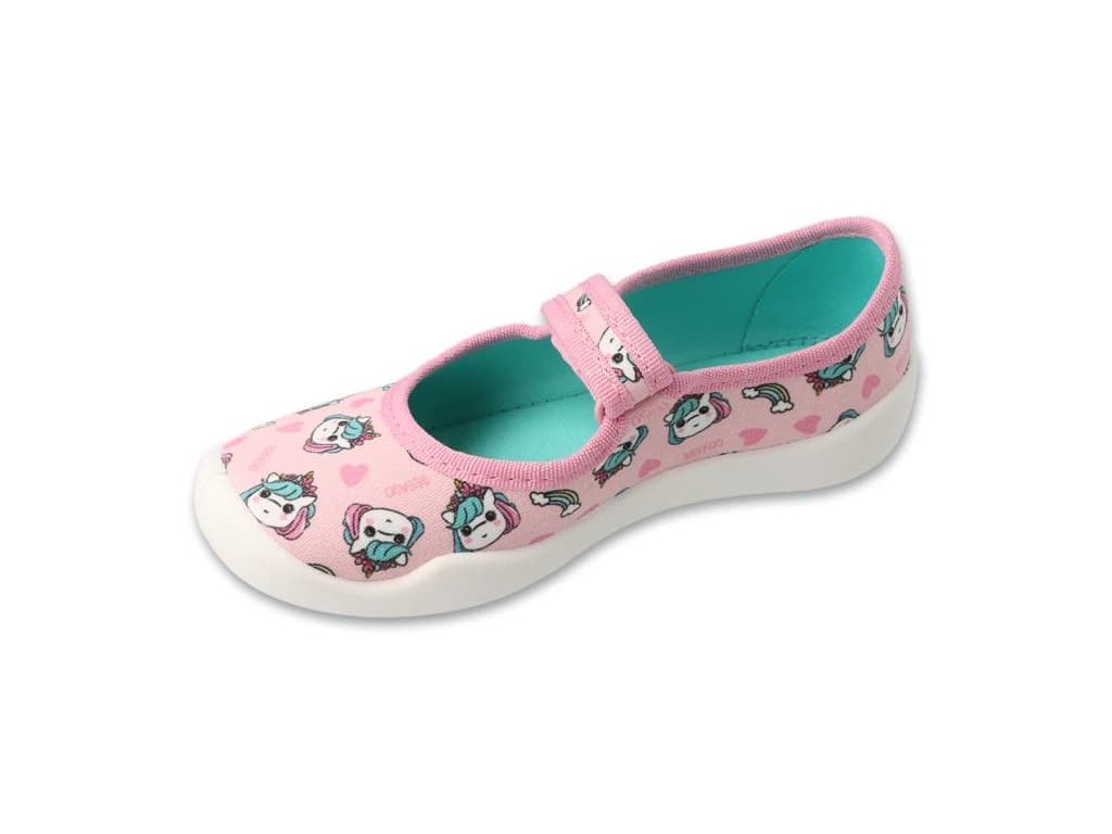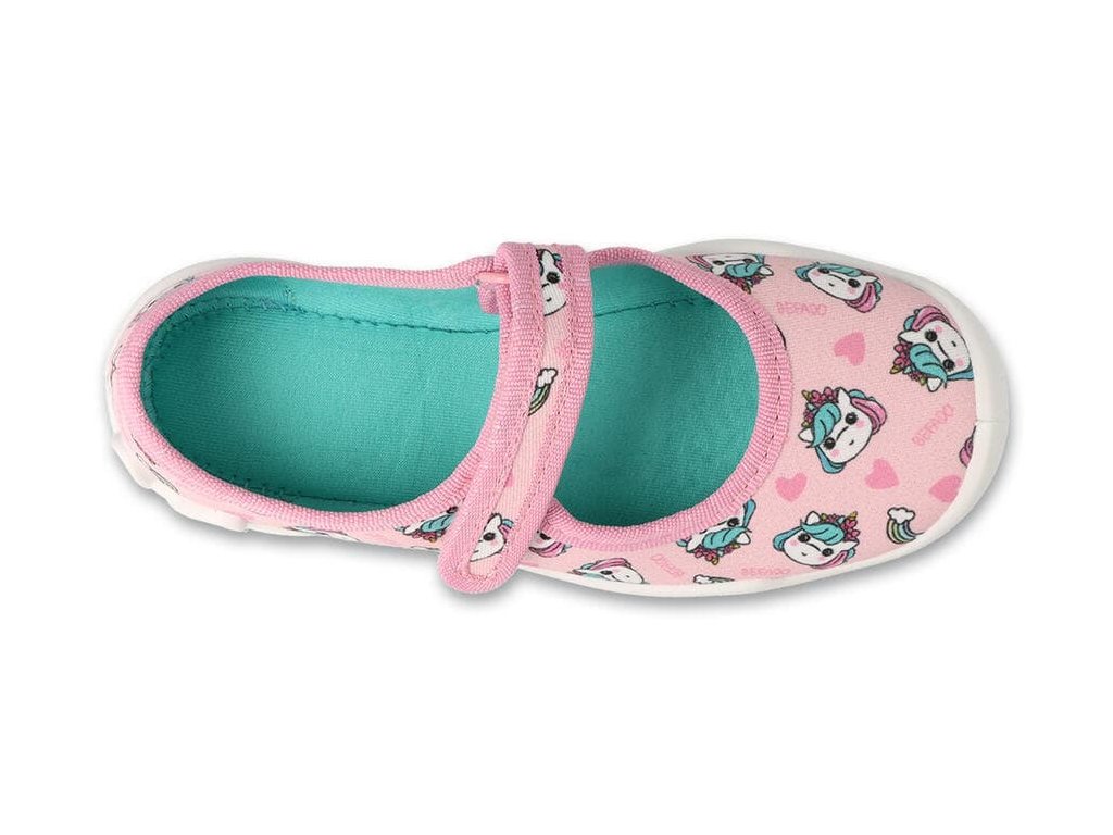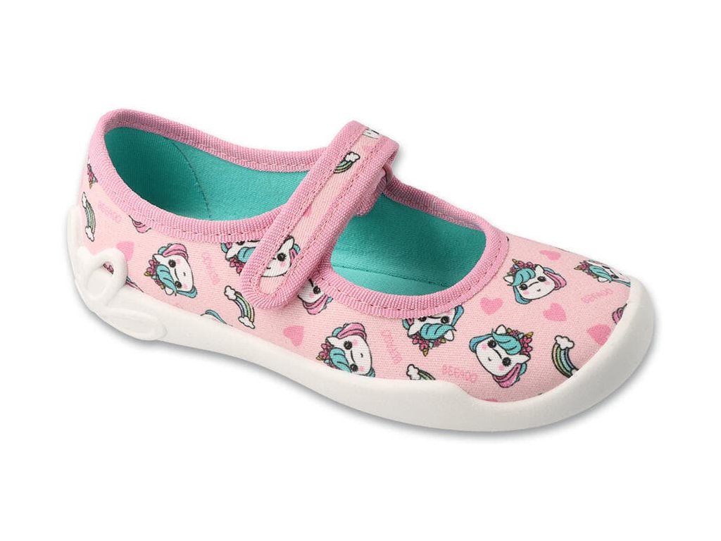 Dievčenské papuče Papuče Befado 114X567 Jednorožce v ružovej farbe, sú skvelé do škôlky, školy aj na doma . Sú tvorené priedušnou textíliou a majú bielu podrážku s ventilačnými otvormi. Vďaka suchému zipsu sa papuče ľahko obúvajú a idú krásne prispôsobiť aj na vyšší priehlavok. Sadnú na priemerné aj užšie nôžky.