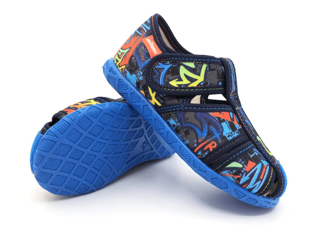 Sandálky Milami 115-5GRAF Blue sú modrej farby s motívom graffiti.
