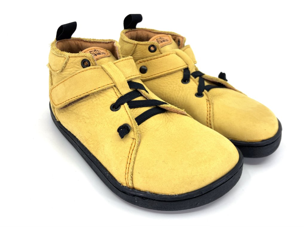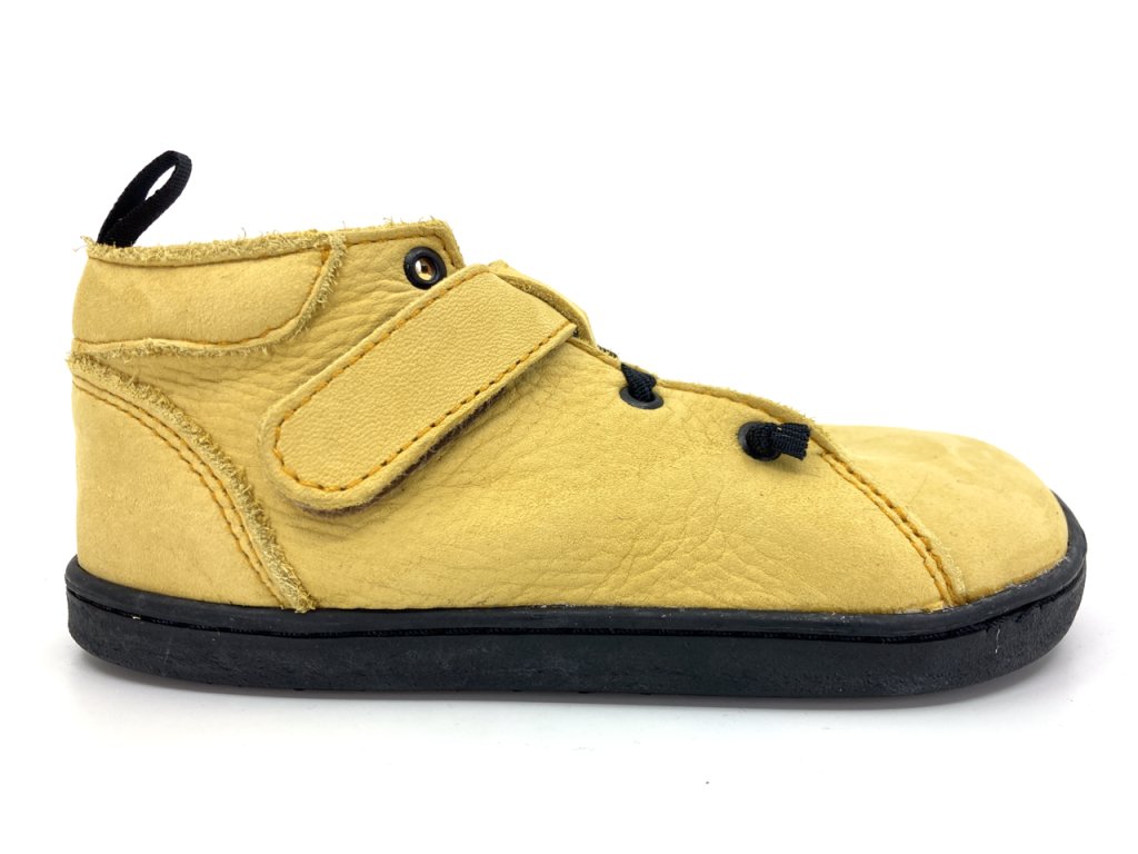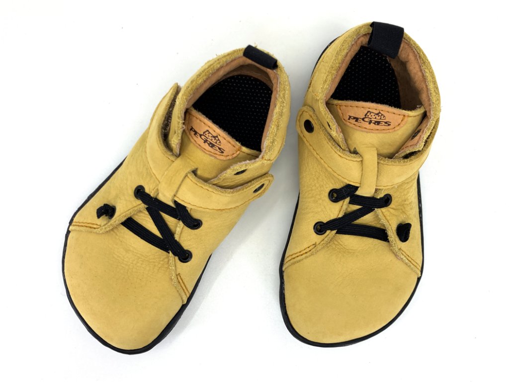 Nové kožené členkové barefoot Pegresky na gumovej podošve - BF52 v modernej žltej farbe.