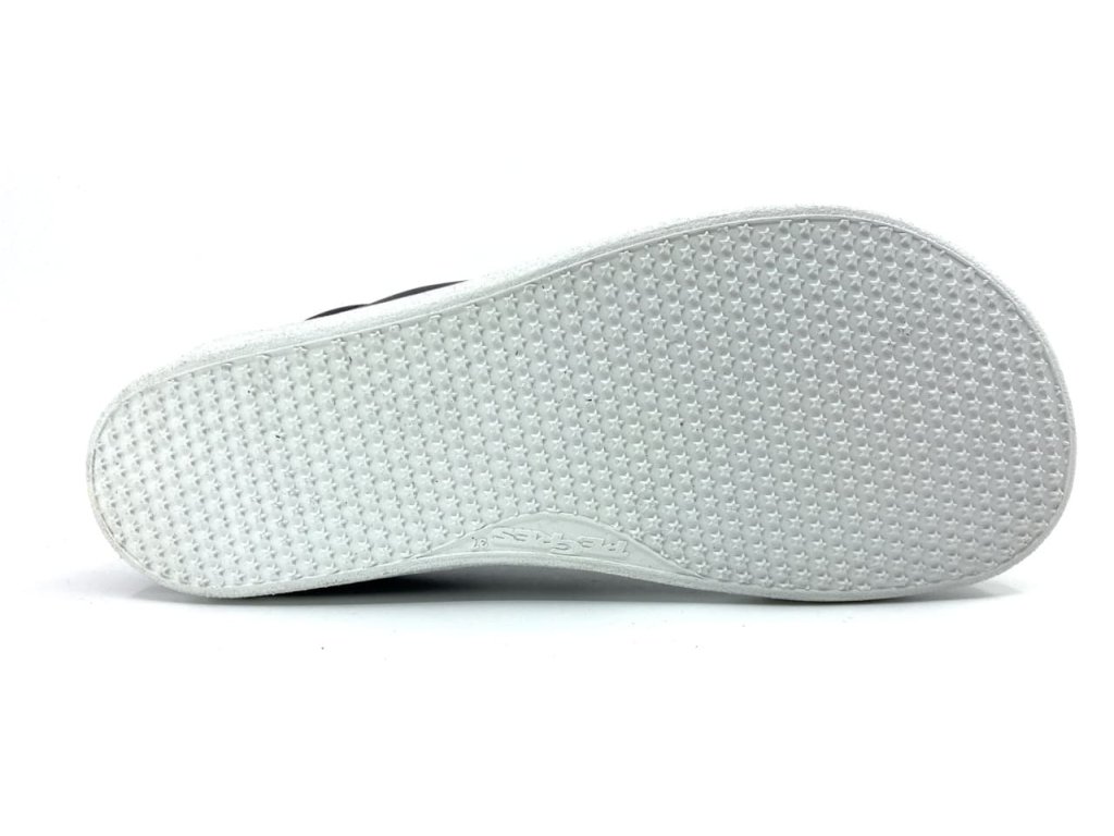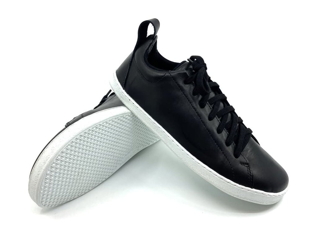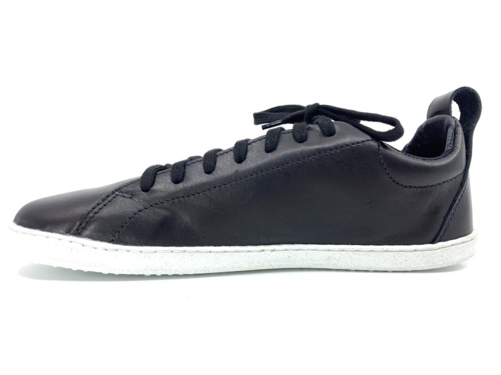 Kožené barefoot tenisky Pegres BF84 čierna v čiernej farbe so zvrškom z hladkej kože , šité na barefoot kopytoch s anatomickým tvarom špičky, vhodným aj pre dominantné palce.