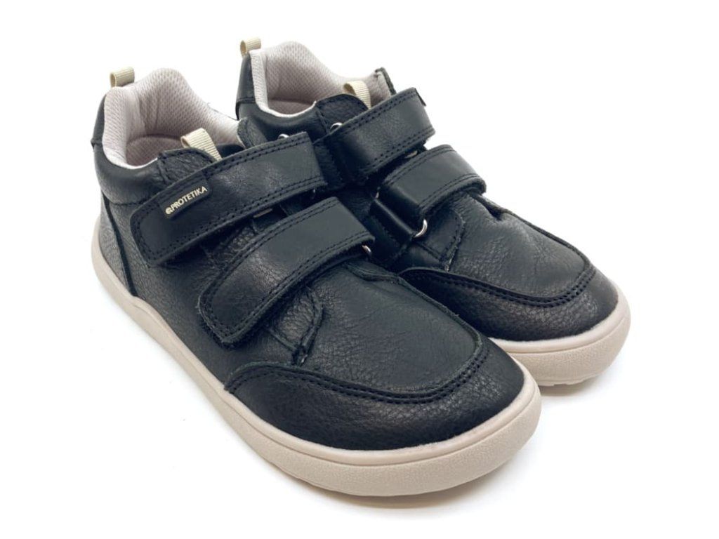 Protetika Alan Black v čiernej farbe sú chlapčenské celoročné barefoot topánky z hladkej kože . Topánky sadnú na normálne široké nôžky. Špička je dostatočne priestranná a vhodná pre dominantné palce. Podrážka je mäkká a ohybná.