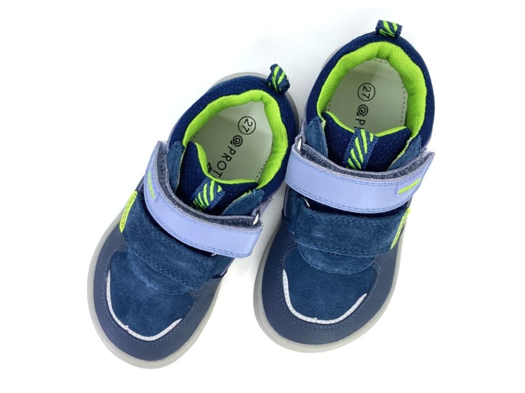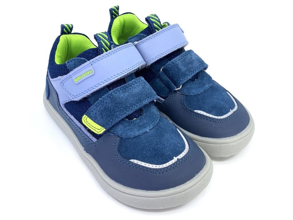 Protetika Kameron Navy sú celoročné barefoot topánky z kože v kombinácii s textilom as gumovou ochranou proti okopu. Hladká koža je dobre umývateľná a brúsená koža (velúr) je menej náchylná na poškriabanie, gumová ochrana proti okopu zabráni poškriabaniu a premoknutiu vo vlhkej tráve.