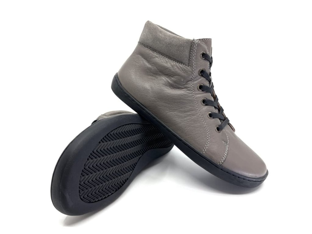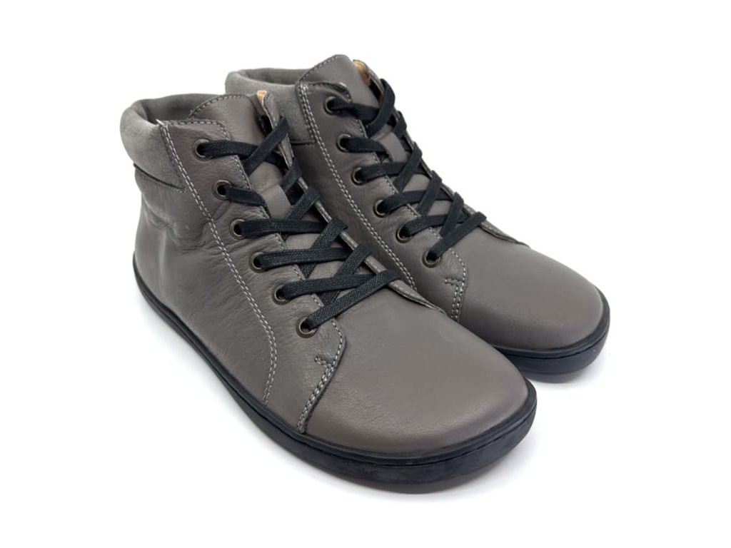 Dámske barefoot členkové topánky Protetika Margit Grey majú zvršok, podšívku aj stielku z kože - hodí sa teda na jar a jeseň. Šnurovanie na ploché šnúrky s pútkom na jazyku.