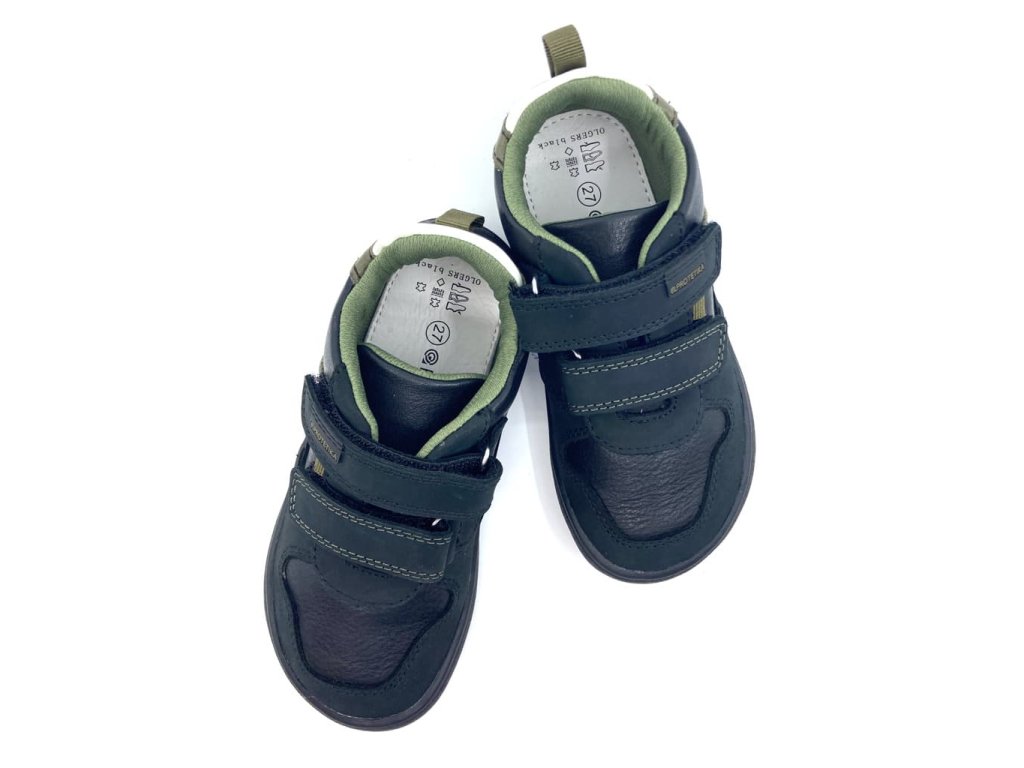 Protetika Olgers Black v čiernej farbe sú chlapčenské celoročné barefoot topánky . Zvršok tvorí hladká koža , podšívku priedušná textília . Topánky sadnú na normálne široké nôžky . Špička je dostatočne priestranná a vhodná pre dominantné palce. Podrážka je mäkká a ohybná , stielka má nášľapnú vrstvu z príjemnej kože . Nechýba ani praktická ochrana proti okopu.