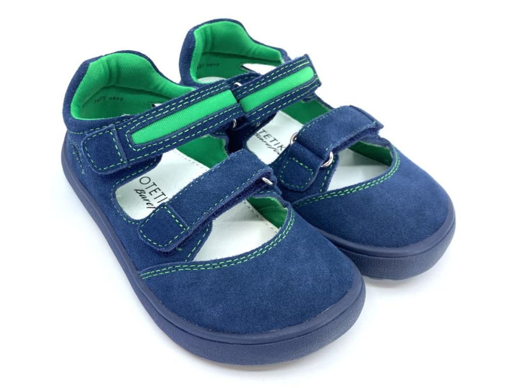 Letné kožené sandále Protetika Pady Navy sú od jari 2024 na novej podrážke, ktorá má lepší, anatomický tvar, než staršie modely. Topánky majú priestrannú špičku (oproti modelu 2023 však nie sú v prstoch tak široké), viac miesta pre palec (aj dominantné), sadnú na normálne široké nôžky. Nový model má mäkkú podrážku, výborne ohybnú všetkými smermi (mäkšie ako mali modely 2023). Topánky spĺňajú požiadavky na barefoot obúvania.