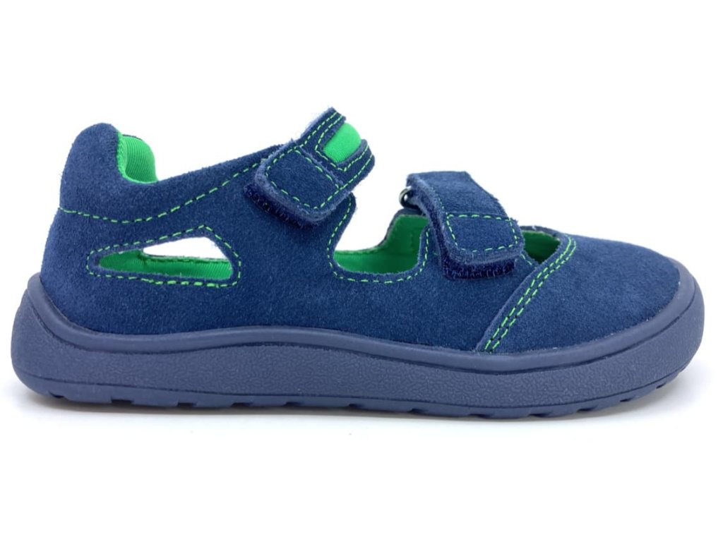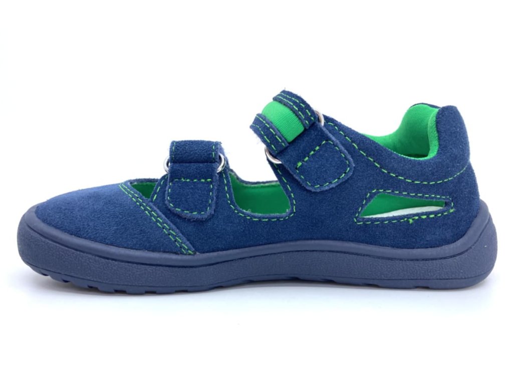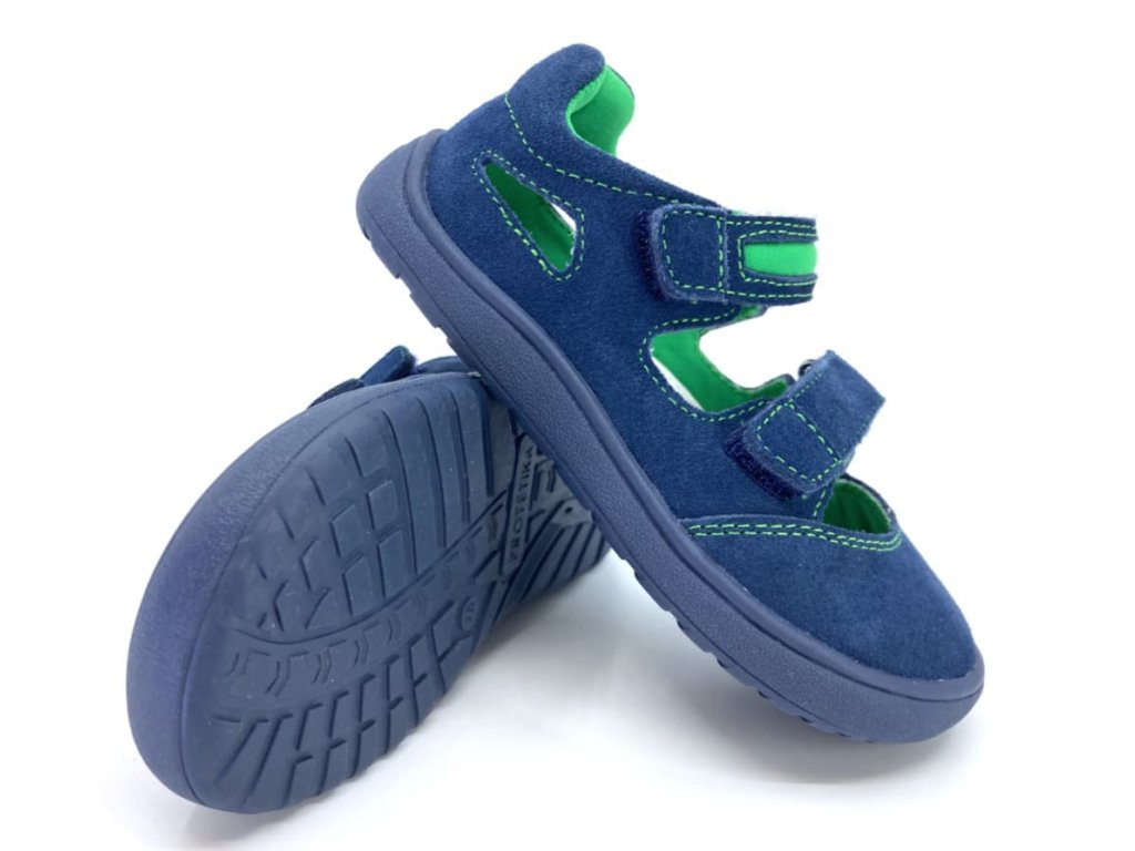 Zvršok je z tmavo modrej brúsenej kože s podrážkou v rovnakej farbe, zelené detaily.