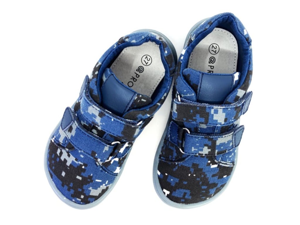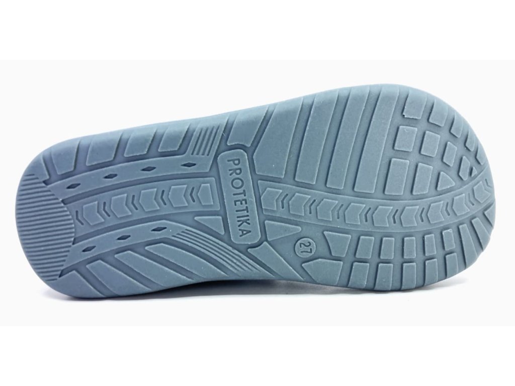 Protetika Roby Blue sú detské textilné barefoot tenisky, vhodné na jar a leto. Nový model na jar 2024 má úplne novú podrážku, ktorá má lepší, anatomický tvar, než staršie modely. Tenisky majú priestrannú špičku (oproti modelu 2023 sú cca o 2mm užšie v prstoch), viac miesta pre palec (aj dominantné), sadnú na normálne široké nôžky. Nový model má mäkkú podrážku, výborne ohybnú všetkými smermi (mäkšie ako mali modely 2023).