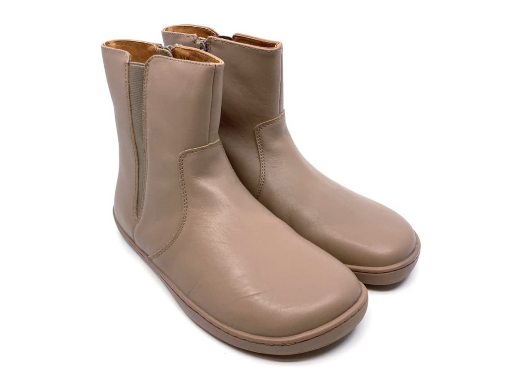 Dámske zimné barefoot poločižmy alebo topánky typu chelsea Protetika Temea White Grey v telovej farbe majú zvršok z hladkej kože, podšívku a stielku z textilu s miernym chĺpkom. Po stranách členku je silná guma, pre ľahké obúvanie.