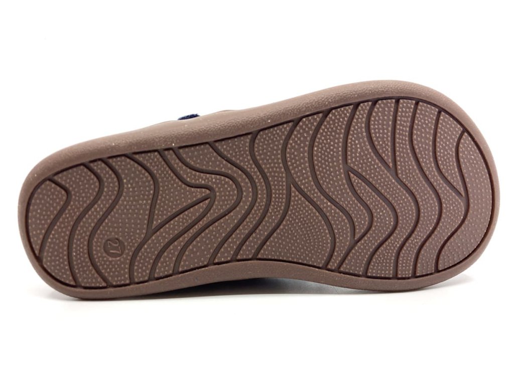 Protetika Protetika Tendo Brown sú tmavo modré chlapčenské barefoot topánky so zvrškom z hladkej kože , s textilnou podšívkou a so stielkou s nášľapom z kože.