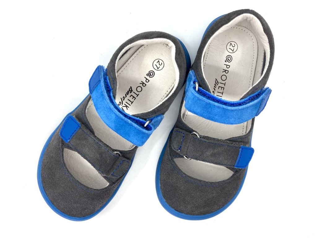 Letné kožené sandále Protetika Tery Grey sú od jari 2023 na novej podrážke a majú teraz priestrannejšiu, širšiu špičku, možno ich lepšie dotiahnuť aj na útly členok - sadnú teda aj na iný typ nôžky ako predchádzajúce modely na starej podrážke. Aj keď sa niekomu zdá nová špička guľatejšia ako pri predchádzajúcich modeloch (nie je od pohľadu taká hranatá), tak je pre zmenu naopak palcová hrana rozšírená a ponúka tak viac miesta vedľa palca (smerom k druhej nohe). Nemusíte mať strach, že by mal palec málo miesta :-) Topánky spĺňajú požiadavky na barefoot obúvania.