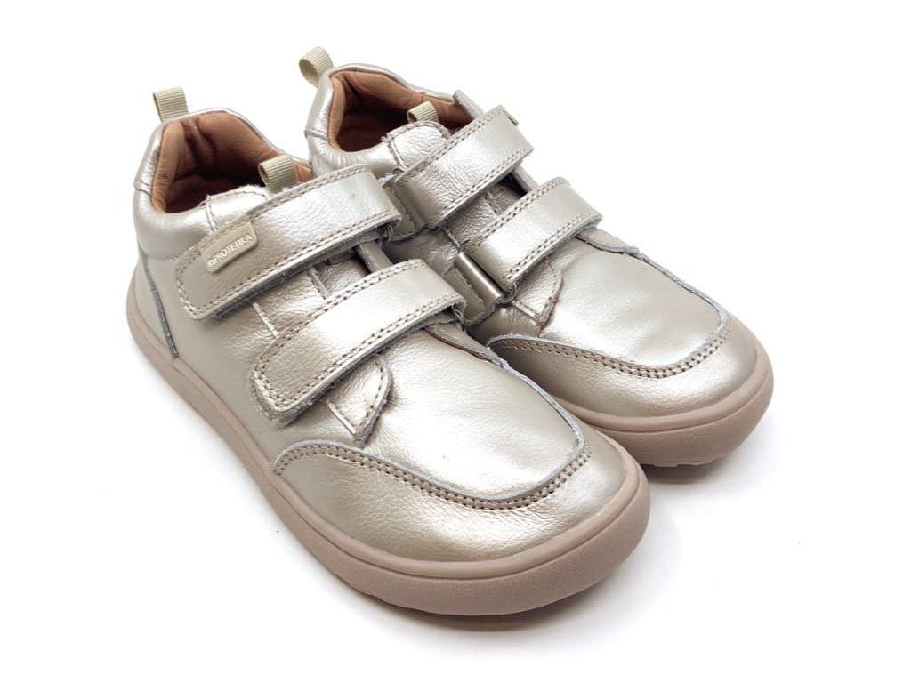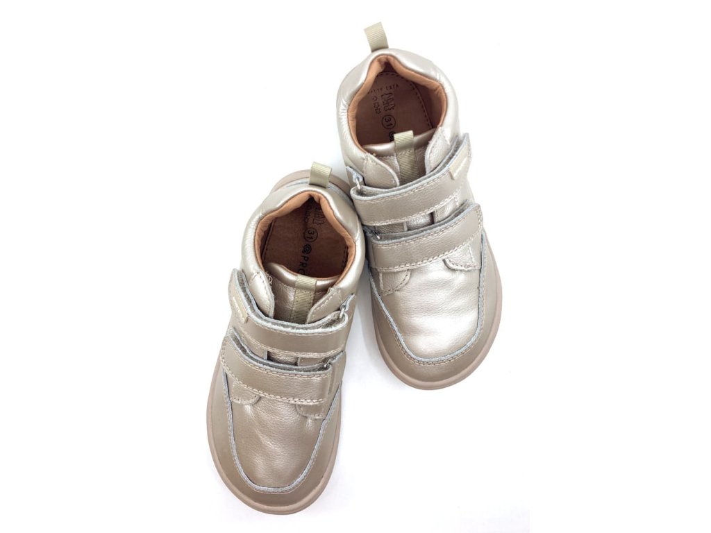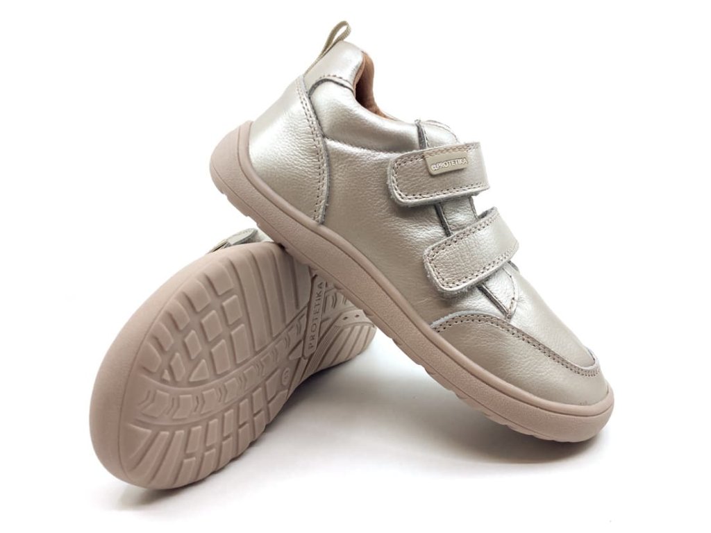 Protetika Viki Silver v striebornej farbe so šedou podrážkou sú dievčenské celoročné barefoot topánky z hladkej kože . Topánky sadnú na normálne široké nôžky. Špička je dostatočne priestranná a vhodná pre dominantné palce. Podrážka je mäkká a ohybná.