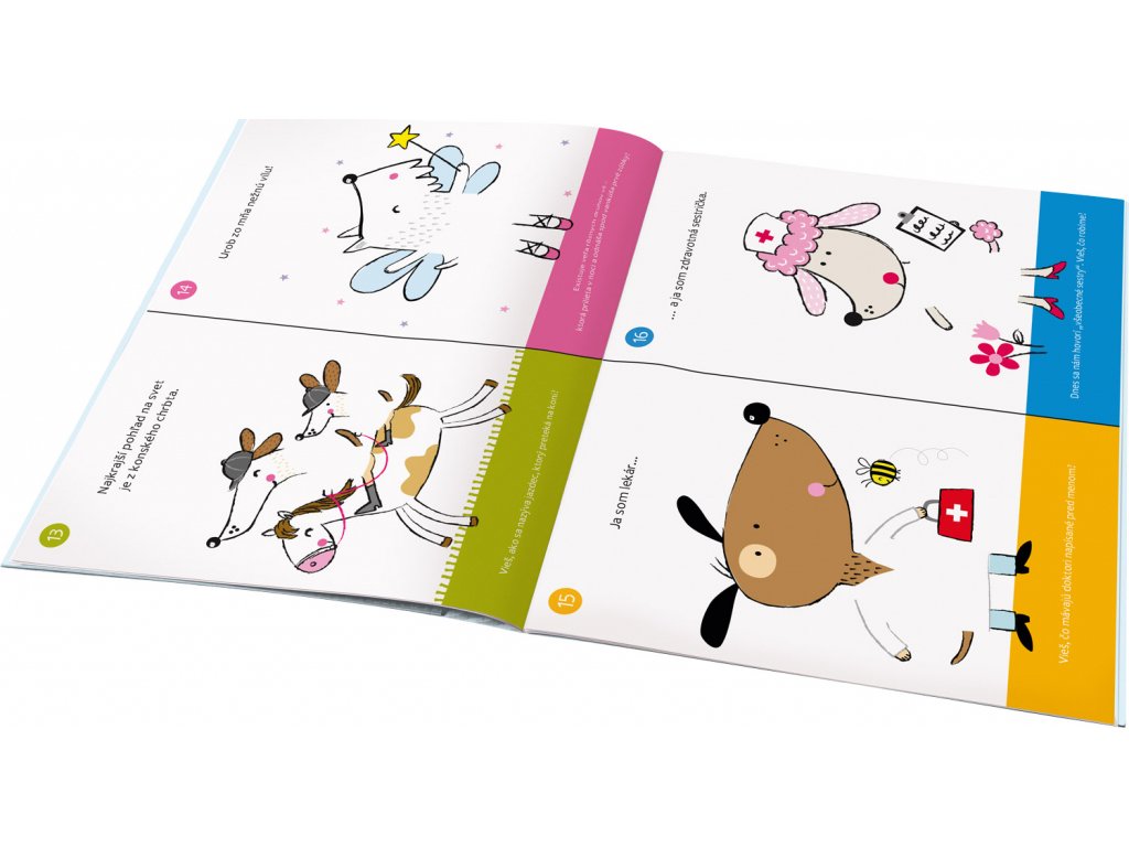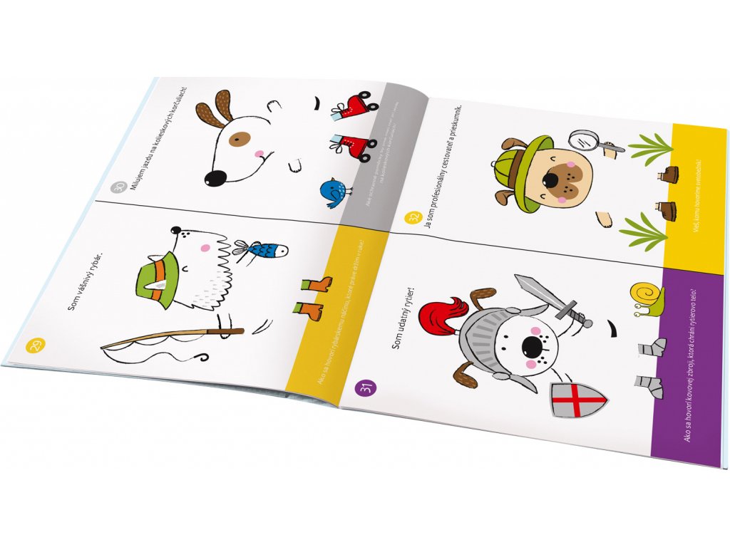 Pomenujte roztomilé psíky, vyberte správne samolepky a oblečte ich podľa toho, čo majú radi alebo čomu sa venujú. A nezabudnite zodpovedať naše otázky! Ak si snáď nebudete vedieť rady, nič sa nedeje: v knižke nájdete aj správne odpovede. Až z vás budú psí odborníci, môžete si nakresliť vlastné zvieratko a doplniť jeho obrázok všetkým, čo potrebuje, aby bolo medzi ostatnými spokojné. Napríklad aj nejakou zákernou otázkou a správnou odpoveďou!