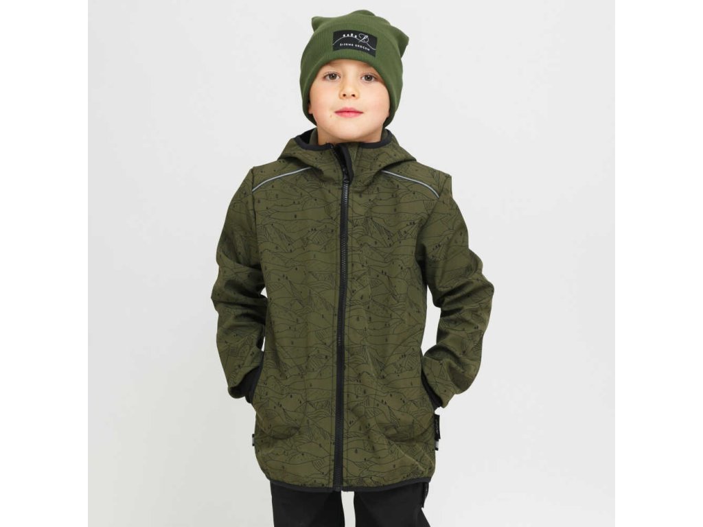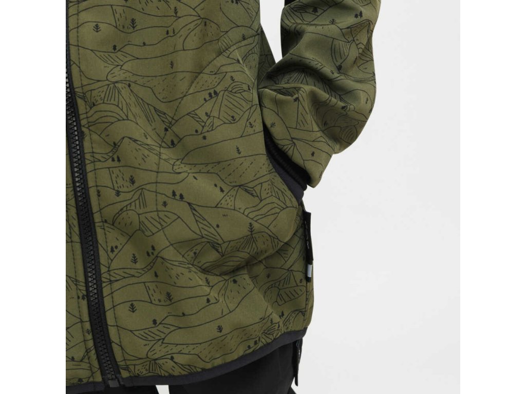 Funkčné khaki softshell bunda s motívom hôr Šijeme srdcom .