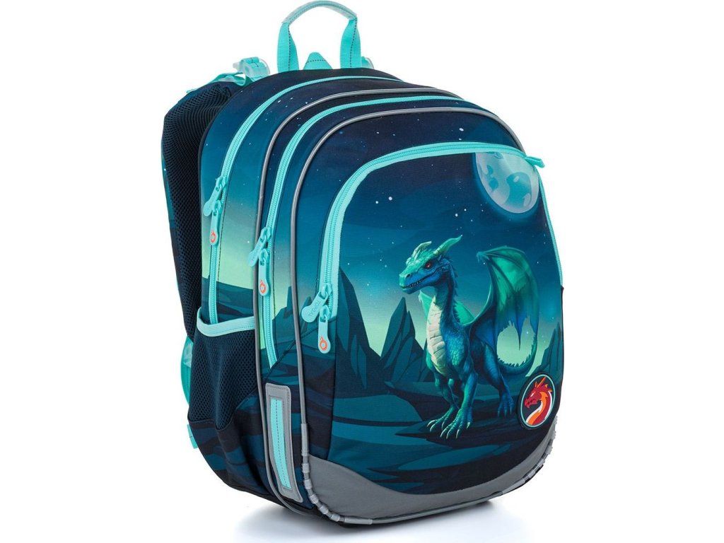 Školský batoh ELLY 26016 je navrhnutý v strihu ELLY , ktorý je vhodný pre deti od 115 cm a ideálny pre obdobie od 1. do 4. triedy . Fantazijný motív draka v temne tyrkysových tónoch prenesie deti do sveta rozprávok a dobrodružstiev a urobí z každého školského dňa malú výpravu.