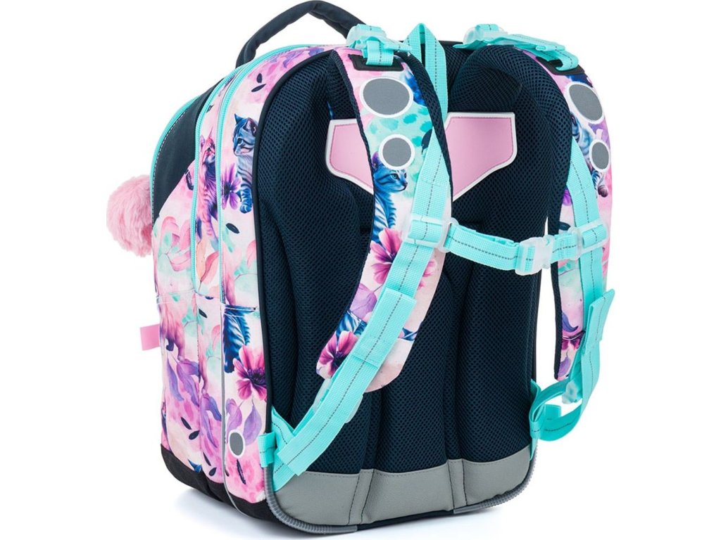 Batoh má ergonomicky tvarovaný chrbát a mäkko polstrované ramenné popruhy , ktoré sa ľahko prispôsobia postave dieťaťa. Vďaka výškovo nastaviteľnej hrudnej pracke batoh dobre drží na chrbte a nešmýka sa ani pri pohybe.