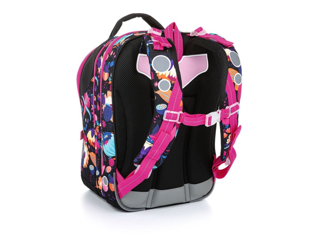 Trojkomorový model COCO je obľúbeným strihom drobných slečien v prvej triede , ale aj školáčok vo vyšších ročníkoch prvého stupňa ZŠ. Batoh je ľahký a vďaka kvetinovému dizajnu pristane každé slečne.