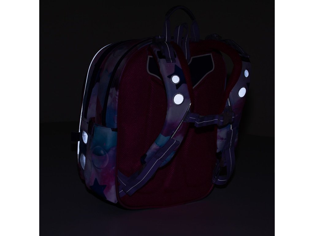 Aj malí školáci musia byť vidieť, obzvlášť v zimnom období, preto sme batoh opatrili radom reflexných prvkov . Nájdete ich na čele batohu, kde sú aj v lemovkách predné vrecká a predné komory, na boku batohu, ale aj na ramenných popruhoch.