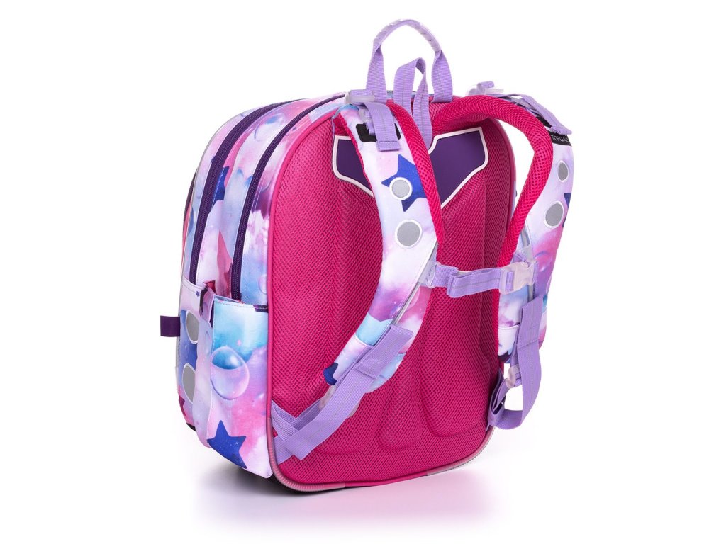 Jednorožec, prívesok, hviezdičky, bublinky, jednoducho snová atmosféra na ľahučkom batohu pre vaše malé drobné školáčky v prvej až tretej triede ZŠ . Vďaka pevnému lisovanému chrbtu je konštrukcia batohu ENDY veľmi ľahká. Preto ho môžeme odporučiť aj pre drobné dievčatá pod 120 cm . Vďaka dvom komorám a hlbokému prednému vrecku ale objemom určite vydrží najmenej do tretej triedy ZŠ.