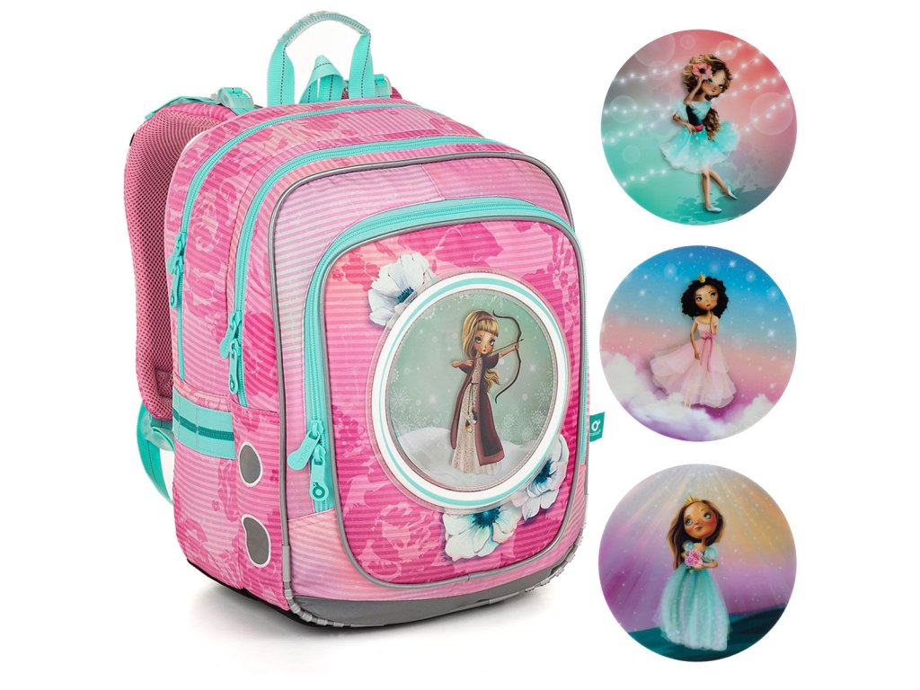 Model ENDY váži iba 0,9 kg , preto je ideálny pre drobné dievčatká od prvej až do tretej triedy ZŠ. Štyri vymeniteľné obrázky princezien môže doplniť piata, ktorú si vaša malá umelkyňa nakreslí. Tým pádom bude mať každý deň do školy iný batoh!