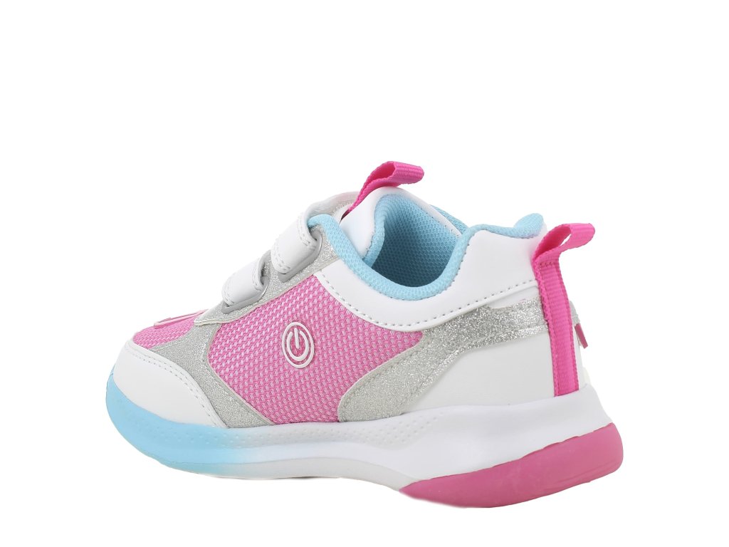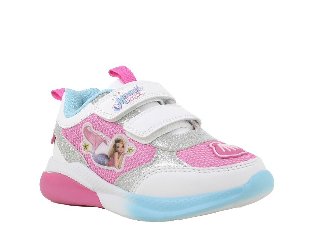 Detské tenisky Primigi 1485100 s motívom Malej morskej víly a blikajúcim ľad opaskom pod pätou sa rozblikajú pri došľape (blikanie je možné vypnúť). Ako bonus bude Vaše dieťa v tme dobre vidieť a tým sa zvýši jeho bezpečie. Funkciu blikania je možné vypnúť vypínačom na vnútornom boku topánky. Podrážka je veľmi ľahká, a má jemnú vzorku. Vďaka kombinácii textilných a syntetických materiálov sú topánky dobre priedušné a zároveň odolné.