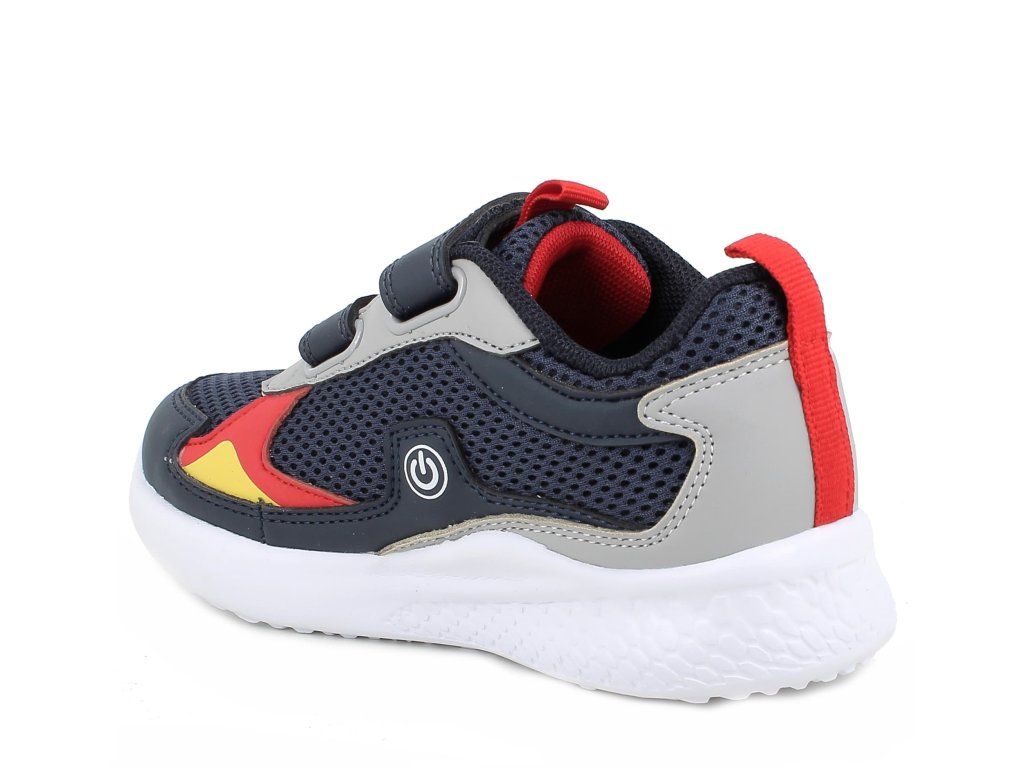 Detské tenisky Primigi 7966611 s blikajúcou pavučinou na boku, diódy pod pavučinou sa rozblikajú pri došľape . Ako bonus bude Vaše dieťa v tme dobre vidieť a tým sa zvýši jeho bezpečie. Funkciu blikania je možné vypnúť vypínačom na vnútornom boku topánky. Podrážka je veľmi ľahká, a má jemnú vzorku. Vďaka kombinácii textilných a syntetických materiálov sú topánky dobre priedušné a zároveň odolné.