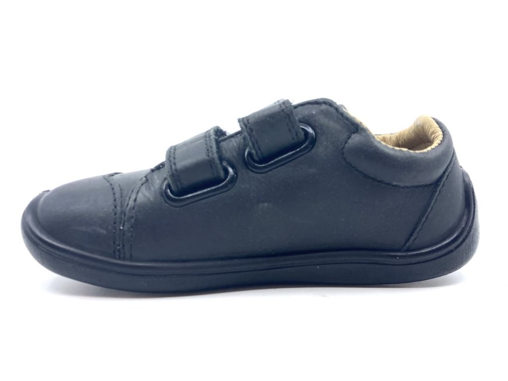 Detské barefoot tenisky 3F 3BE39/LT99 v praktickej čiernej farbe s čiernou podrážkou. Zvršok tvorí hladká koža , ktorá sa ľahko udržuje. Na špičke je navyše zosilnená ochrana proti okopu. Podšívka aj stielka sú taktiež z príjemnej kože . Podrážka je na špičke aj päte vyvýšená a chráni tak proti okopu a odreniu. Jednoduché zapínanie pomocou suchých zipsov, ktoré krásne regulujú oblasť priehlavku aj členku.