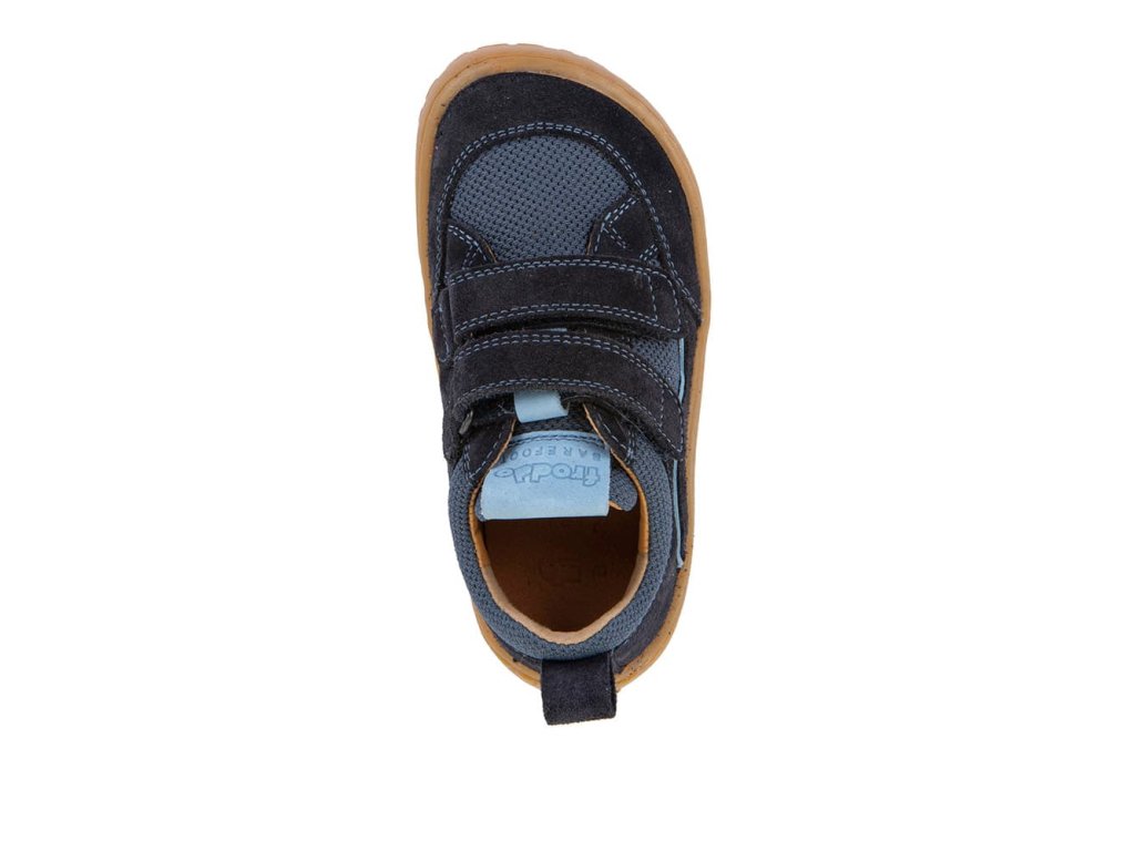 Štýlové barefoot tenisky Froddo G3130271-12 Dark Blue kombinujú štýlový dizajn a ľahké obúvanie aj pre deti. Vrchná časť topánky je z kombinácie kožených a textilných materiálov, zároveň ale majú kompletne koženú podšívku. Sú tak trochu priedušnejšie, než kompletne kožené modely, zároveň sú ale obdobne odolné. Praktické zapínanie na suchý zips umožňuje ľahké obúvanie aj deťom. Podrážka je z farbenej prírodnej gumy, so vzorkou.