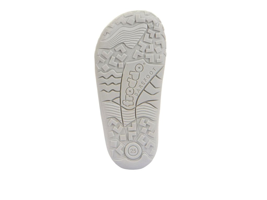 - Podrážka: veľmi ohybná vo všetkých smeroch - pozdĺžne aj priečne, zároveň prešitá, nulový drop, výrazná vzorka, podrážka je v prednej časti pred prstami vyvýšená a chráni topánku proti okopaniu, rovnako tak je mierne vyvýšená za pätou, nová verzia podrážky so vzorkou, nezošľapáva sa
