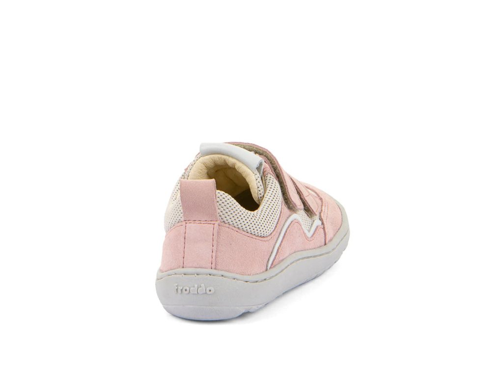 Štýlové barefoot tenisky Froddo G3130271-25 Pink kombinujú štýlový dizajn a ľahké obúvanie aj pre deti. Vrchná časť topánky je z kombinácie kožených a textilných materiálov, zároveň ale majú kompletne koženú podšívku. Sú tak trochu priedušnejšie, než kompletne kožené modely, zároveň sú ale obdobne odolné. Praktické zapínanie na suchý zips umožňuje ľahké obúvanie aj deťom. Podrážka je z farbenej prírodnej gumy, so vzorkou.