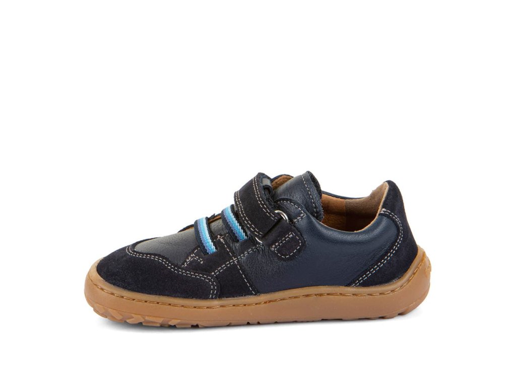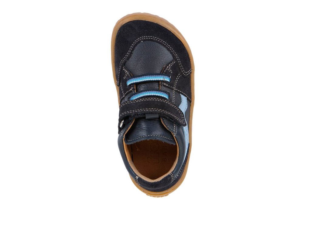 Štýlové barefoot tenisky Froddo G3130286 Dark Blue majú dizajn zameraný na väčšie deti. Zapínajú sa pomocou jedného suchého zipsu pod ktorým je gumička imitujúca šnúrky. Tenisky tak dobre vyzerajú a zároveň sa jednoducho obúvajú - stačí len utiahnuť jeden suchý zips. Vrchná časť topánky je kompletne kožená a tým veľmi odolná. Podrážka je z farbenej prírodnej gumy, so vzorkou. Reflexný prvok na boku.