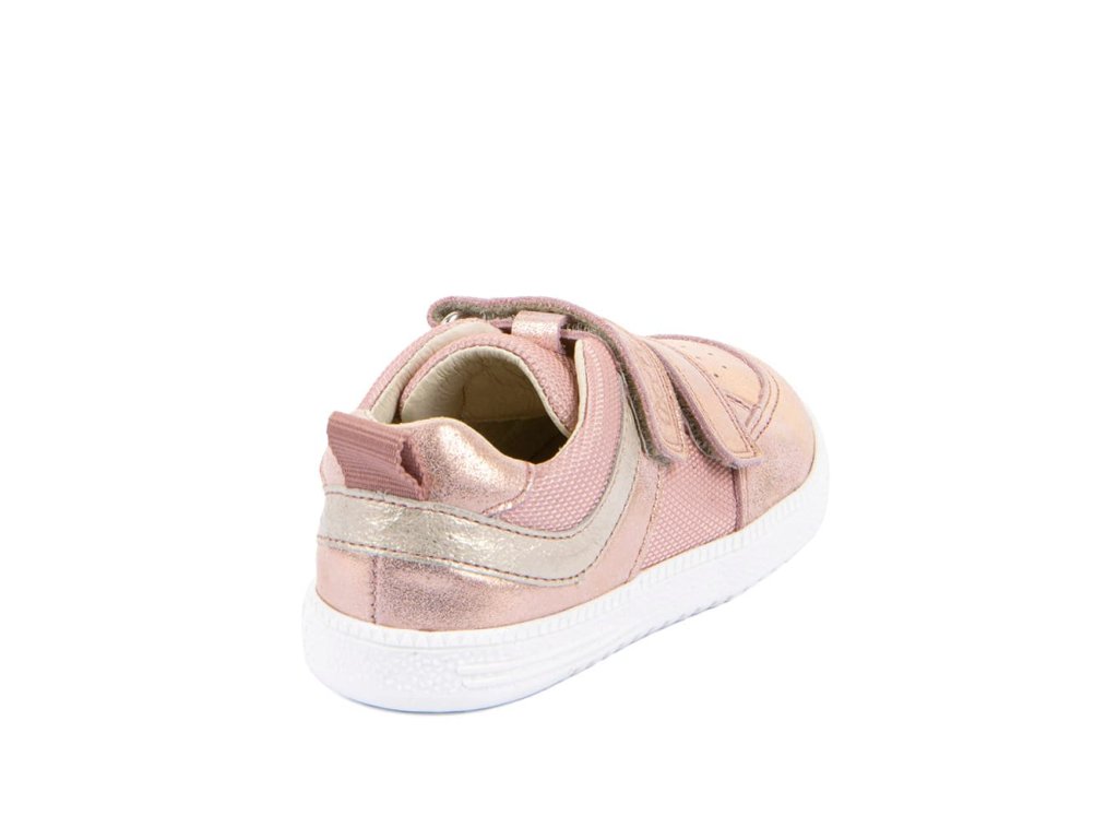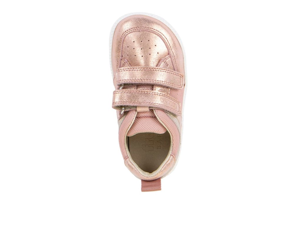 Štýlové barefoot celoročky Froddo Zeru G3130282-5 Pink/Gold v obľúbenej ružovej farbe s trblietavým efektom. Tenisky sadnú na užšiu až normálnu nôžku a sú vhodné pre normálny priehlavok. Vďaka zapínaniu na suchý zips sa ľahko obúvajú aj deťom v škôlke.