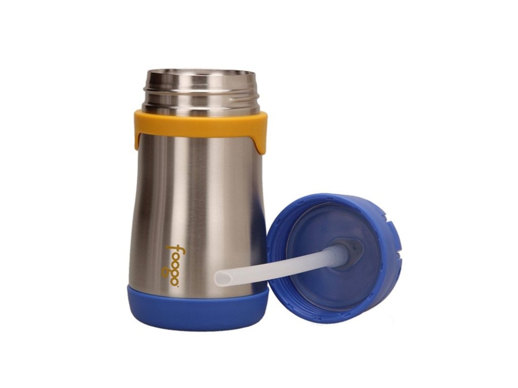Nerezová vákuovo izolovaná termoska Foogo je termoska so slamkou pre najmenšie deti. Na jedno telo termosky je možné dokúpiť tri rôzne uzávery podľa veku a potrieb dieťaťa. Termofľaša je dodávaná so slamkou - vhodné od 18tich mesiacov.