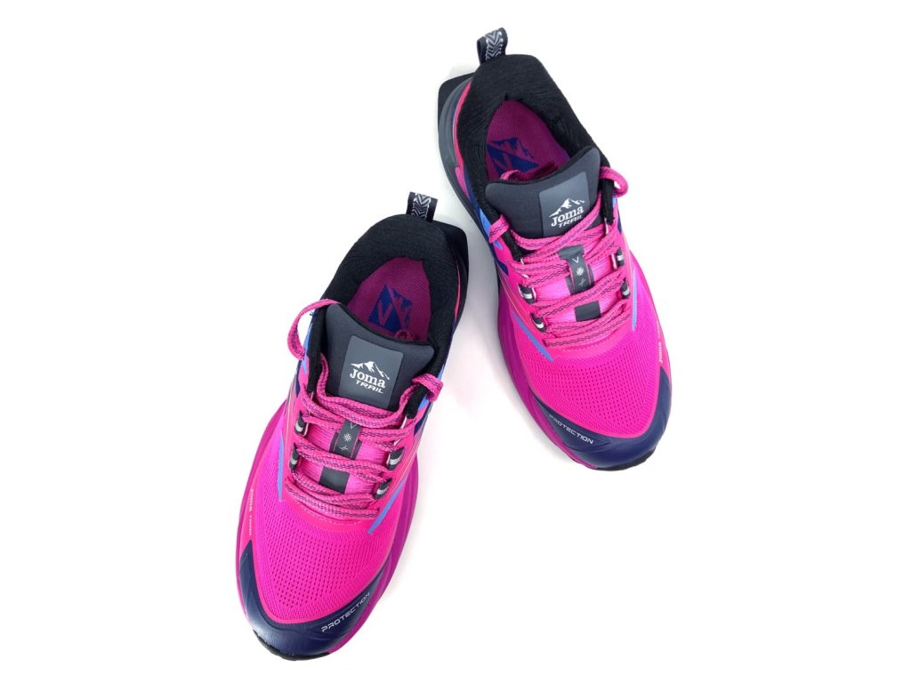 Trailové tenisky Joma Sierra 2610 Fuchsia v dámskej ružovej (fuchsiovej) farbe. Zaujmú nielen svojim dizajnom. Topánky sú ľahké a odolné , vyrobené z priedušnej textílie a syntetiky . Podrážka aj stielka skvele tlmí dopady , hrubá vzorka na podrážke priľne v akomkoľvek teréne.