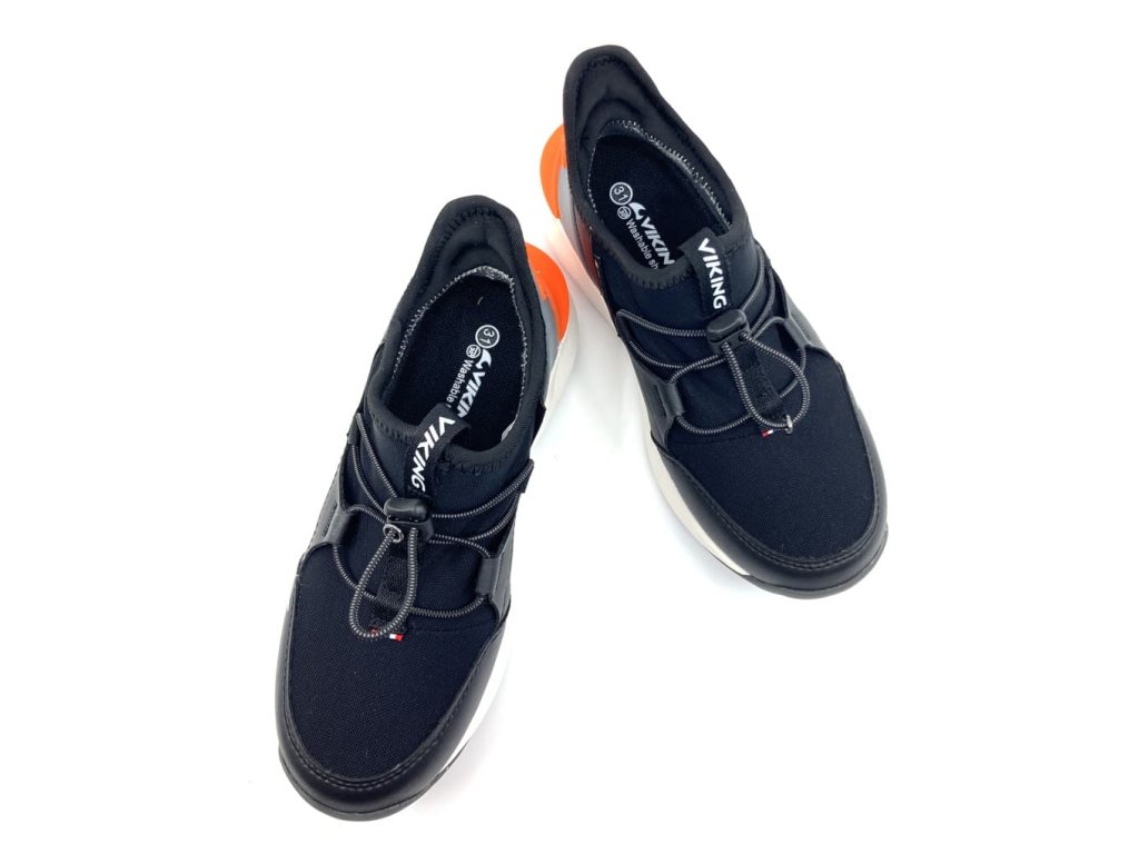 Štýlové detské topánky Viking QuickGo GTX SL v čiernej farbe s oranžovými detailmi a Gore-Tex membránou. V modernom dizajne, a pevnou rozšírenou podrážkou, a funkčnou Gore-Tex membránou. Keď chce vaše dieťa dobre vyzerať, a vy chcete aby malo funkčné topánky. Veľmi odolná podrážka s hrubšou vzorkou a unikátny pevný opätok pre ľahké obúvanie.