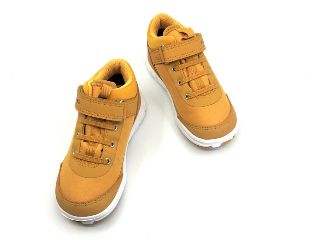 Chlapčenské topánky Viking Spectrum Mid GTX R v modernom horčicovom odtieni so šedými detailmi as Gore-Tex membránou. Kombinácia textilných a syntetických materiálov robí topánky dobre priedušné a zároveň odolné vďaka ochrannej vrstve na špičke a päte, ktorá zároveň slúži ako reflexný prvok. GoreTex membrána zaistí nepremokavosť a zároveň priedušnosť, takže udrží detské nôžky v suchu a pohodlí.