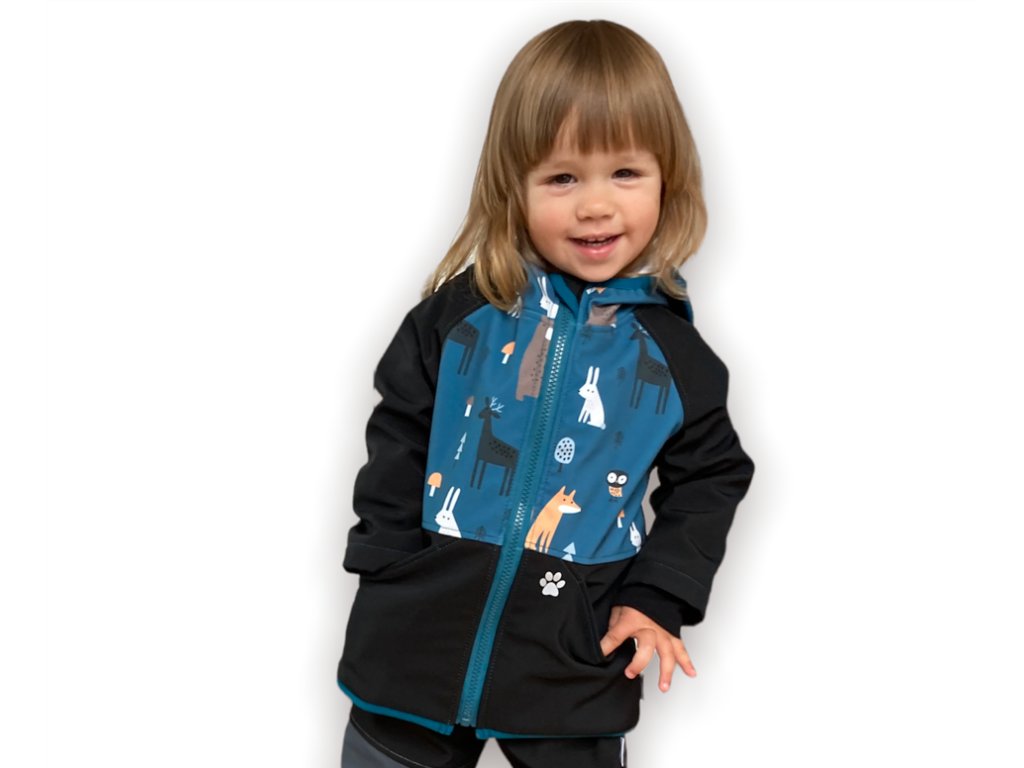 Detská softshellová bunda s fleecom as roztomilým motívom zvieratiek, ktorý nájdete iba pri Vyrobeninách.