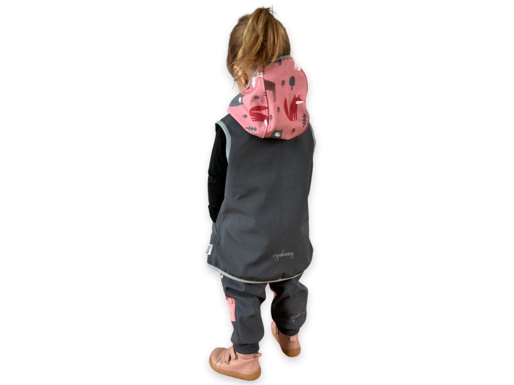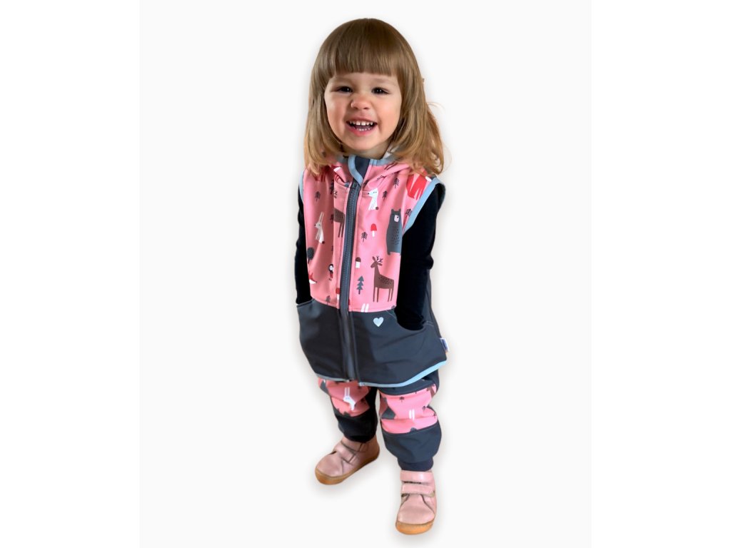 Vyrobeniny Detská softshellová vesta - ružová so zvieratkami