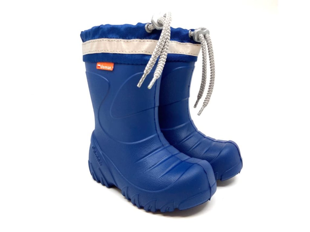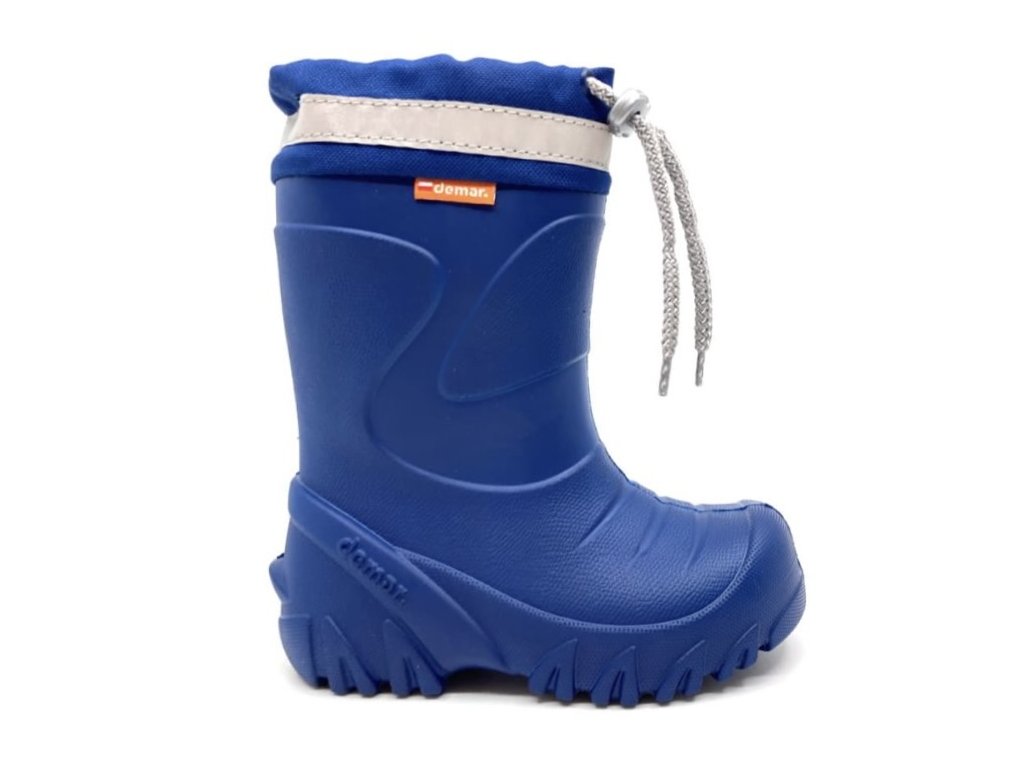 Detské zateplené gumáky Demar MAMMUT S. Vďaka vyberateľnej vložke z ovčej vlny sú vhodné aj na jeseň a zimu. Sú vyrobené z extra ľahkej EVA peny. Na obuvi je bezpečnostný reflexný pásik pre dobrú viditeľnosť dieťaťa v tme. Na zvršku je zaťahovací nadstavec na šnúrku proti padaniu nečistôt do čižmy.