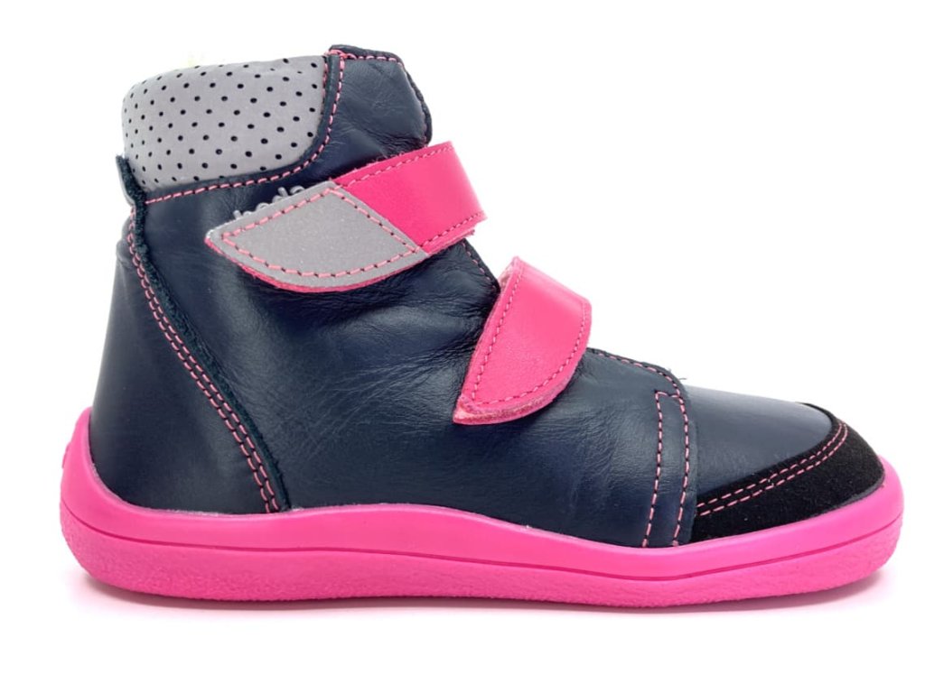 Zimné barefoot topánky Beda EL BF 0004/W/SO/MK sú vyššieho strihu, majú zvršok z hladkej kože a sú zateplené umelým kožúškom, ktorý nehryzie. Nôžky v nich budú ako v papučkách - pohodlný širší strih rešpektujúci tvar nohy - veľmi priestranná špička, mäkučké, ľahučké, ohybné a navyše funkčné vďaka TE-POR membráne. Reflexný prvok na golieri a velcro pásku pre dobrú viditeľnosť a bezpečnosť dieťaťa. Topánky majú okop z mikrovlákna.