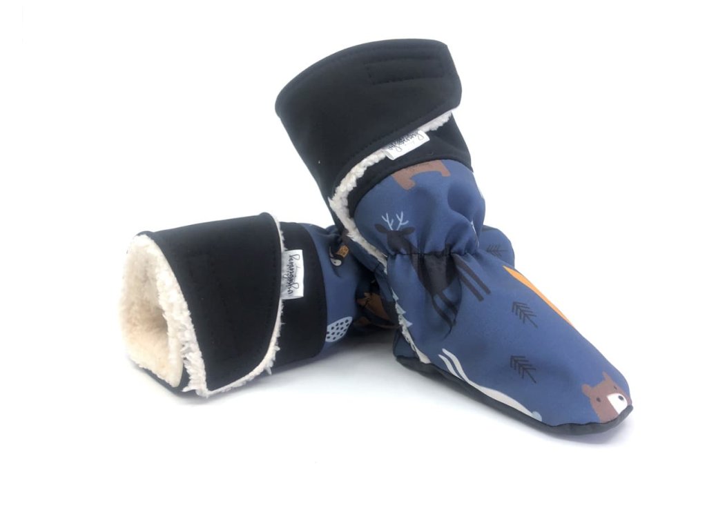 Zimné barefoot capáčky Vyrobeniny modré so zvieratkami