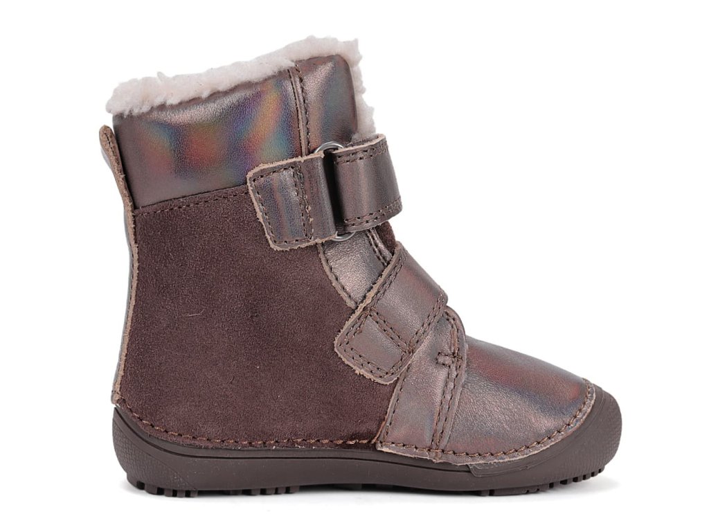 Zimné barefoot topánky DD Step W063-52985 Chocolate - spoločne s 073 najohybnejšie a najviac barefootová topánka od DDstep. Konkrétne DDstep W063-W063-52985 je v hnedej farbe a motívom koníka . Topánky sú zvonku celé v kombinácii hladkej a brúsenej kože. Sú vyššie, končia až vyššie nad členkom. Vnútri celej topánky je teplý kožúšok.
