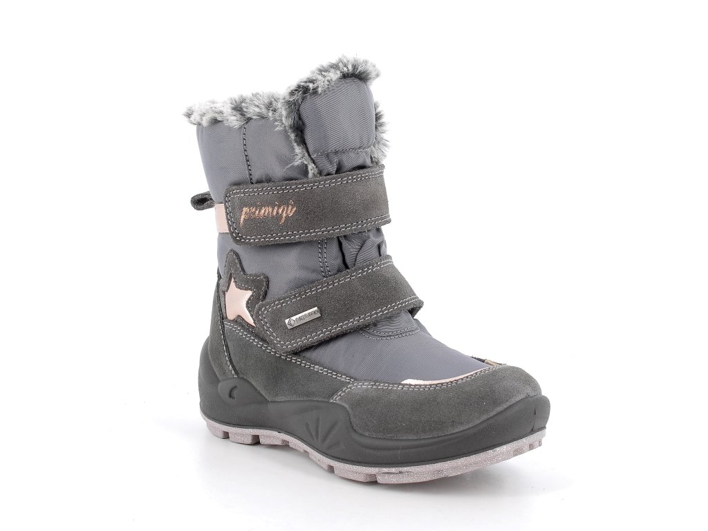 Dievčenské zimné topánky Primigi 6878555 v šedej farbe Grey s membránou Goretex. Elegantná šedá brúsená koža a jemné doplnky. Po celom vnútrajšku je teplý vlnený kožúšok, len v hornej časti je pre efekt z jemného plyšu, ktorý je aj veľmi priezvisko na omak. Topánky sú vyššie, a tak zahrejú nohy približne až do polovice lýtok. Sú vybavené GoreTex membránou, ktorá vo vnútri zaistí sucho za každej situácie.