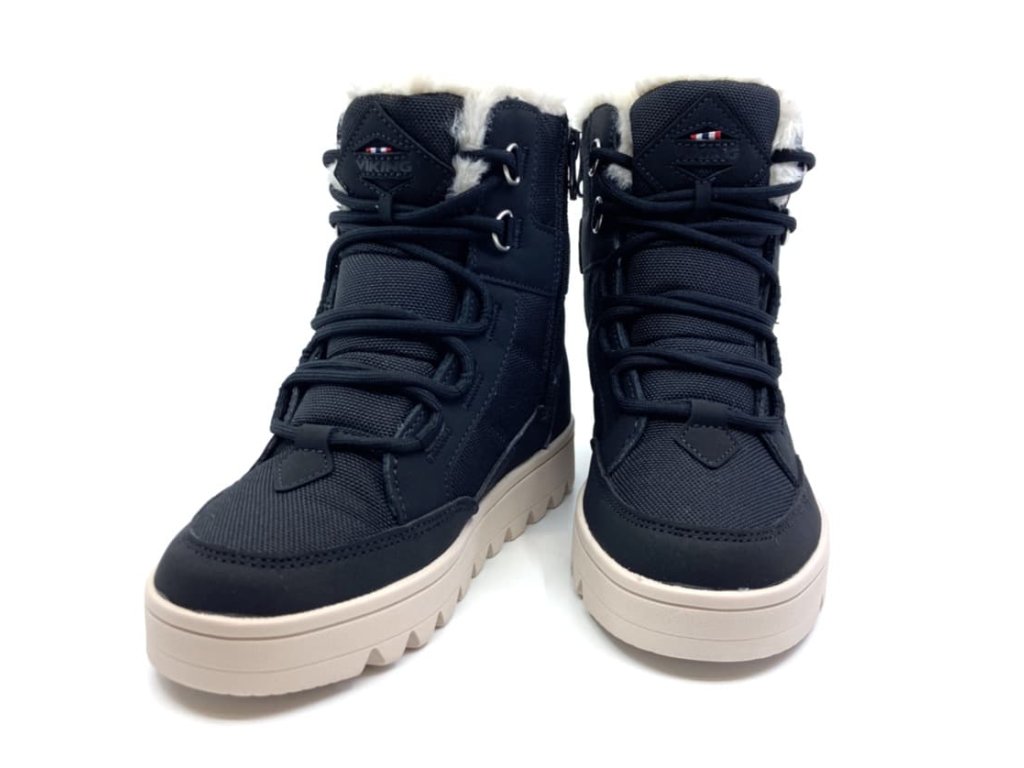 Elegantné a funkčné dievčenské zimné topánky Viking Fleek Warm GTX Zip v čiernej farbe so svetlou podrážkou, s výrazným zimným vzorom. Kombinácia odolných syntetických materiálov . Topánky sú výrazne zateplené kožúškom, vrátane stielky. Gore-Tex membrána zaistí nepremokavosť a zároveň priedušnosť, takže udrží detské nohy v suchu a pohodlí. Reflexný prvok za pätou pre väčšiu bezpečnosť.