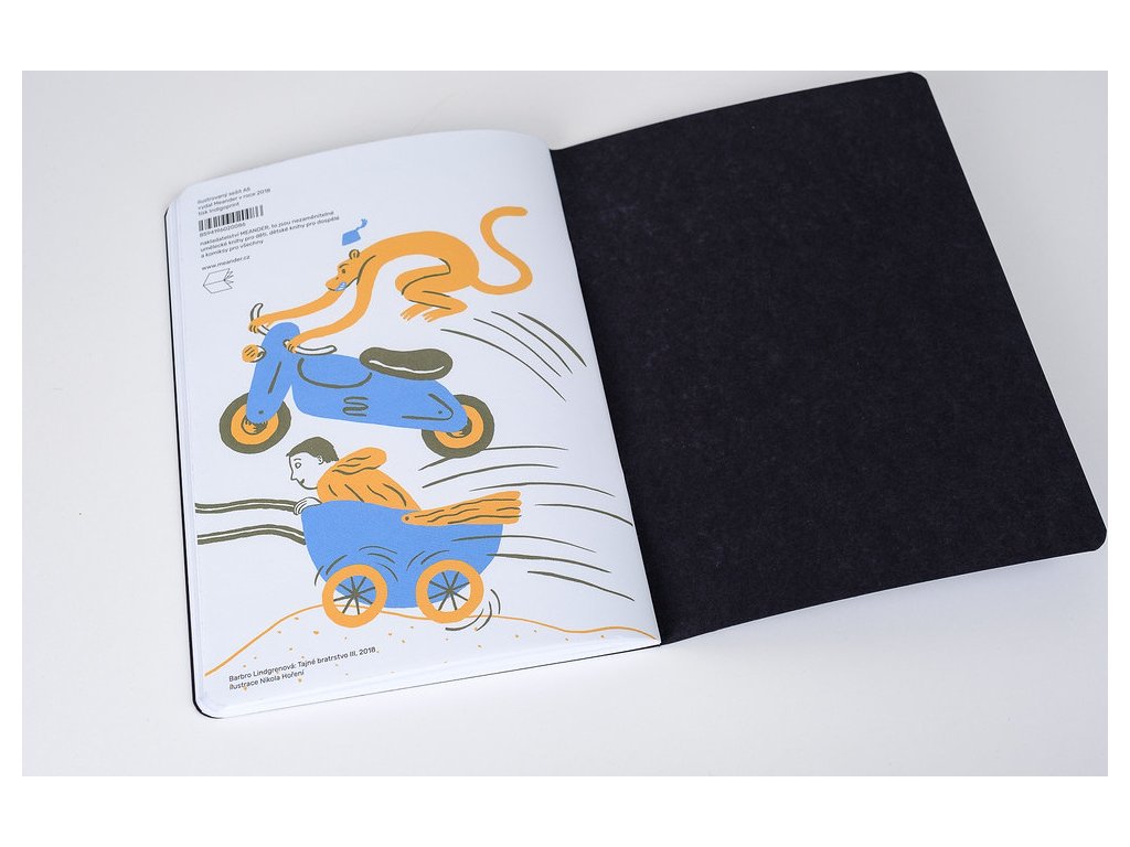 Zošit z ušľachtilého papiera s ilustráciami z kníh Meandra na poznámky, nápady alebo obrázky... S praktickou gumičkou na ceruzky od Papelote.